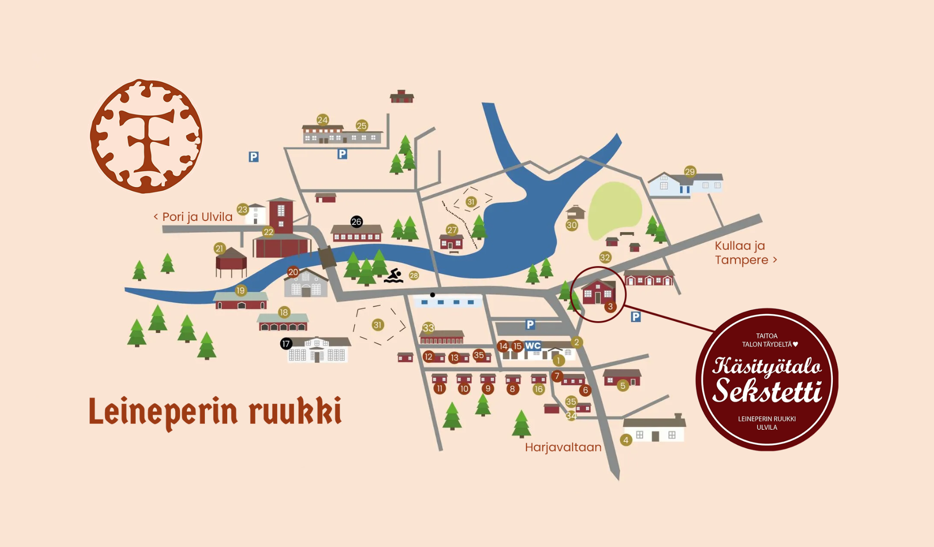 Käsityötalo Sekstetin joulupuoti palvelee Leineperin ruukilla viitenä viikonloppuna marras-joulukuussa 2025. Myös muut ruukin käsityöläismökit, info ja ravintola Leineperin Savipakari ovat avoinna.